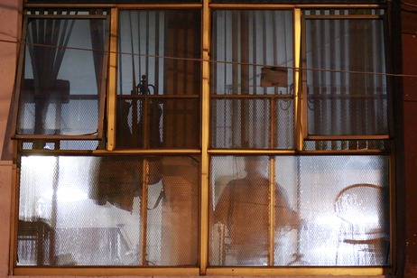 Inspirada en “La invención del cuadro” de Victor Stoichiță, y a la manera de “Rear window” de Hitchcock, la pieza explora la virtualidad entre el interior y el exterior. El espectador se ve afectado por el recorte visual, teniendo que completar la narrativa de lo que ocurre detrás del vidrio, desde su propia subjetividad.